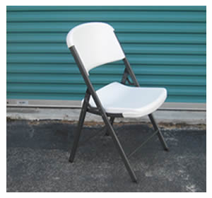 Our Lifetime chairs feature a countered taller back. These sturdy chairs are suitable for even your plus sized guests. We deliver them to your garage or backyard. Actual setup is not included. Please fold and stack them for pickup.
