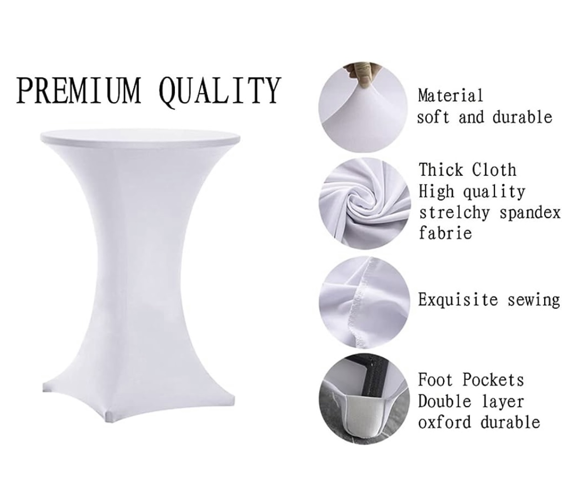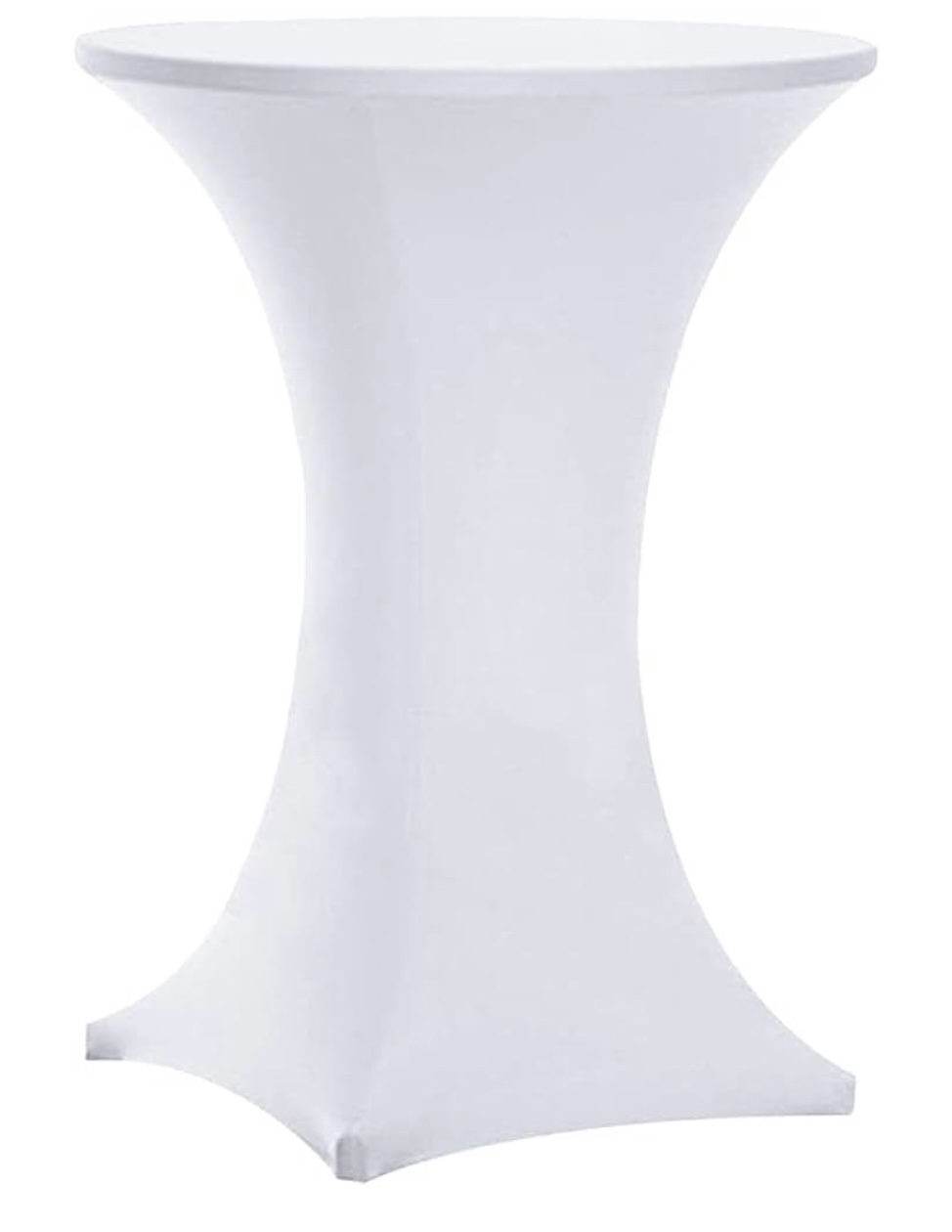 White Highboy Spandex Cocktail Table Cover (White). Cover is yours to keep. We deliver the covers to your garage or backyard with the cocktail tables. Actual set up is not included.