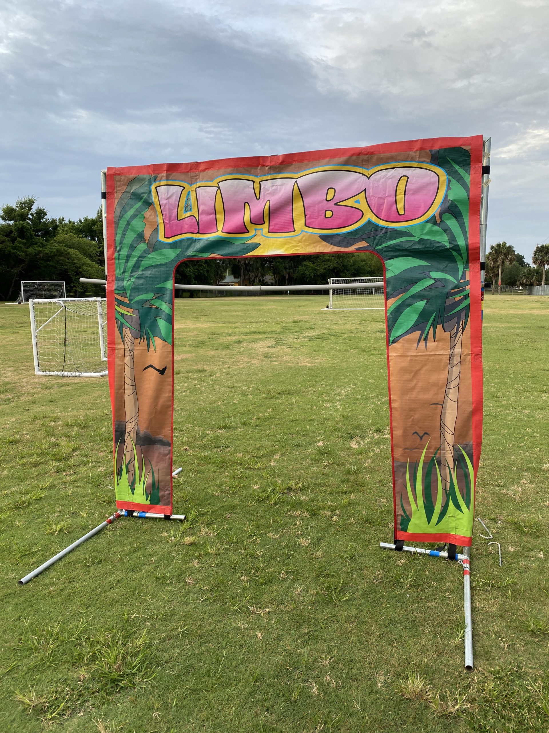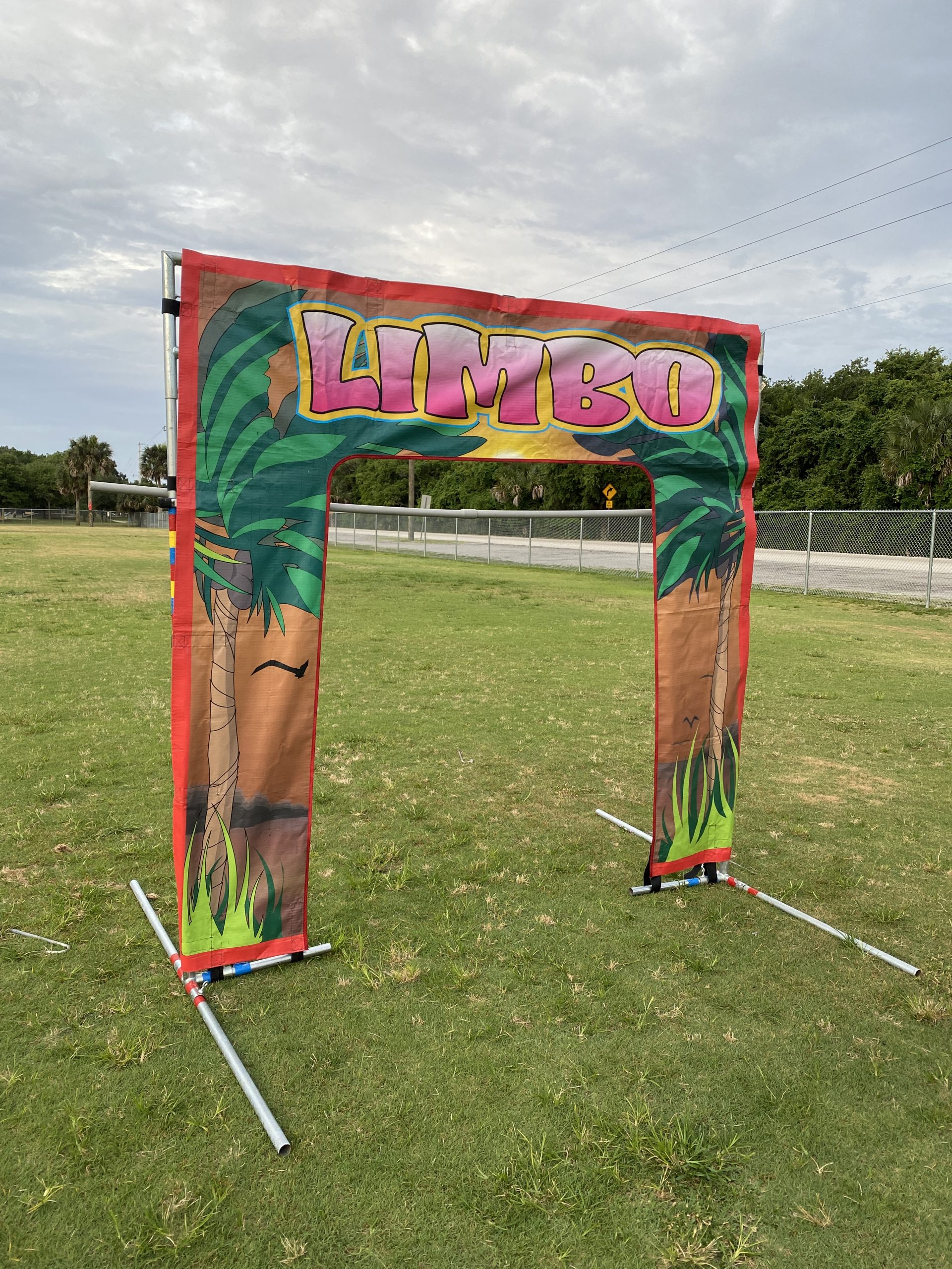 Our new Limbo game is sure to liven up your party. Go ahead form a ring of your guests. Turn on the limbo music with the supplied CD. Let the fun begin!!!! See which guest survives while continuing lowing the limbo stick. Add four sand bags for an inside set-up. Go to Extras / Add-ons from the home page. This unit can not be included in any game package.